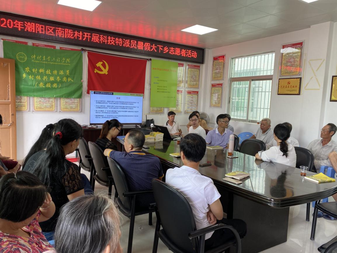 近日,公司郑奕雄教授带队到汕头市潮阳区南陇村开展赠送书籍、技术培训、田间诊断和技术指导等乡村振兴服务活动。活动得到汕头市各级科技、推广和扶贫等有关部门的重视和支持,汕头市科技局主办,公司、潮阳区科技局、河溪镇南陇村委会等单位共同承办本次活动。
