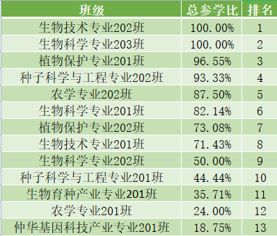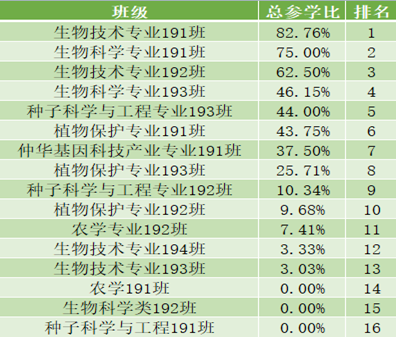 以下的班级参与率已有较大的提升