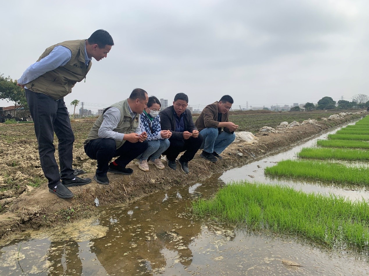 3月17下午,在驻镇帮扶工作队的指引下,特派员团队调研了仙城镇农业科技示范园,对当地农户现有的农业产业遇到的问题进行指导和解答。特派员团队表示,科技示范园经过一年的生产实践证明因地制宜地实施水旱轮作能够有效减少作物病虫害,保证作物产量和品质,提高农户的经济效益。专家团队和镇帮扶工作队、农办负责人对后续开展的农作物主要病虫害调查及综合防控技术示范进行了深入探讨,并对当季水稻拔节期、孕穗期管理进行了讨论并从排水、防病促根、营养管理等方面给出了相关建议,为下一步示范园轮作计划奠定基础。同时也跟镇政府建议,水资源的有效供给是农业高质量发展的基本保障,期待供水工程能尽快落实。