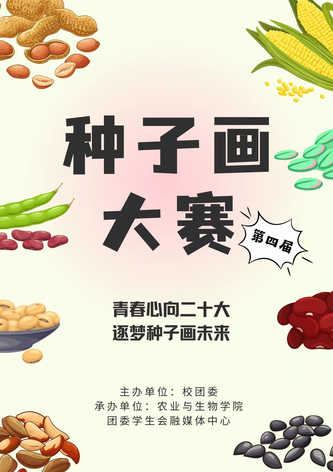 一粒种子可以改变一个世界。党的二十大报告首次明确提出“加快建设农业强国”,把农业强国建设纳入我国强国建设战略体系。种子是农业的“芯片”,作为农业大国,我们要把种子安全紧紧掌握在自己手中。此次活动目的在于使同学们的课余生活更加丰富多彩,为了深入贯彻学习二十大精神,丰富同学们的课余生活,由公司团委主办、tyc122ccvip承办的第四届种子画大赛开始啦!希望大家能借助种子画来表达对祖国的热爱,展望未来美好生活。