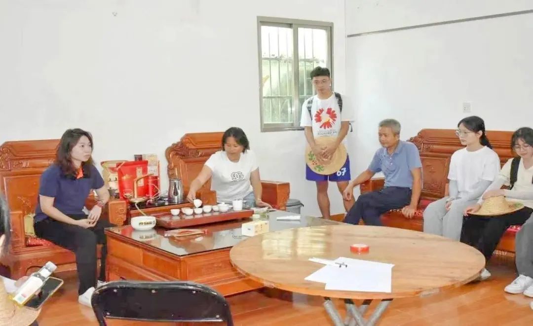 神仙里村党支部委员、村委副主任刘晓玲对实践队的到来表示热烈欢迎,向大家介绍了当地的基本情况和发展需求,她希望通过实践队的帮助,改善村里现有四小园的种植规划和加强红火蚁的防控。在谈话过程中,我们还了解到,当地十分重视非遗文化的传承,村里不仅有自组建的潮汕特色英歌舞队,还积极开展村晚活动,为村民搭建了可供平日娱乐休闲的大舞台,极大地丰富了村民的精神文化生活。