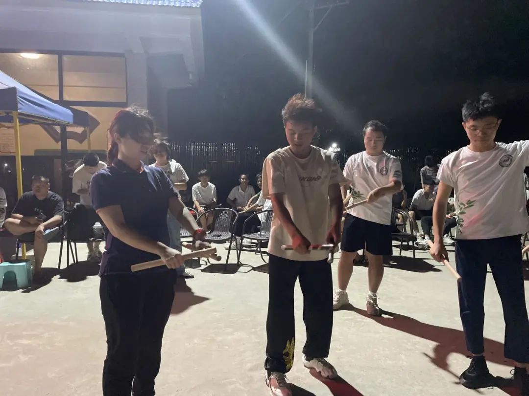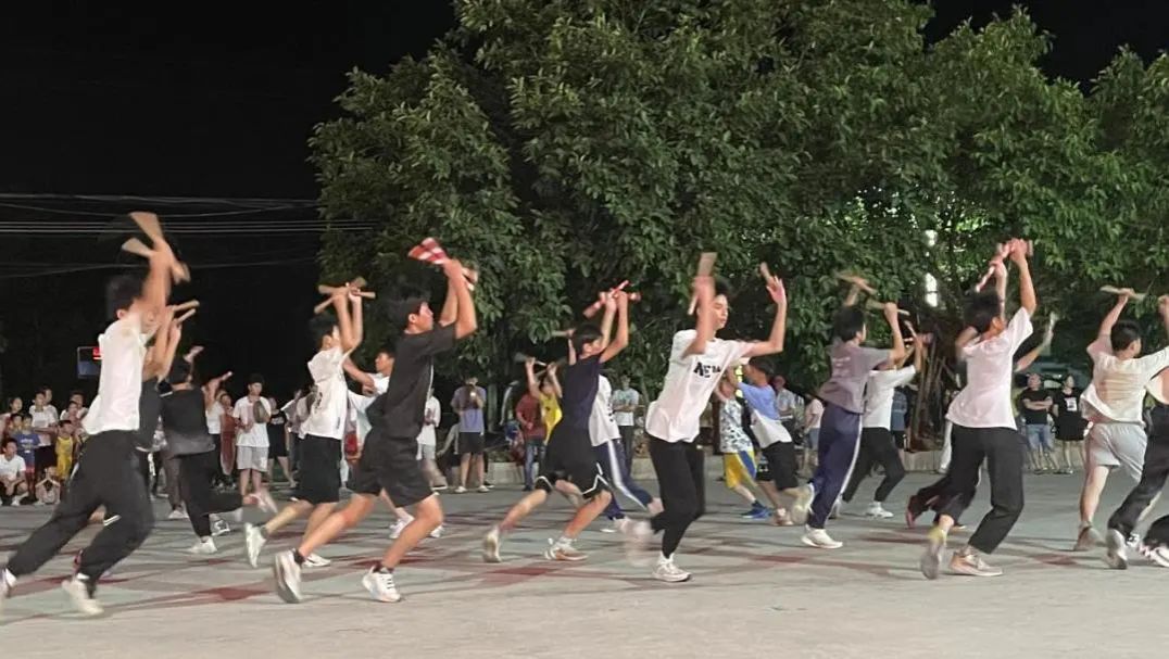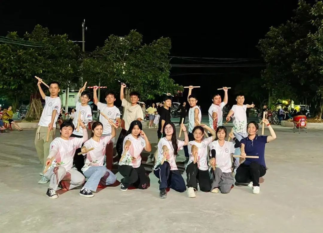 用汗水浇灌的成果是最甜的,认真劳动的人是最可爱的。进行一天的劳动后,在神仙里村党支部委员、村委副主任刘晓玲的带领下,我们来到神仙里村天仙岩党群服务中心观看英歌舞表演。在豪迈的阳刚气势,变幻的阵法招式的吸引下,队员们纷纷学习起英歌舞,现场学习氛围特别浓郁。