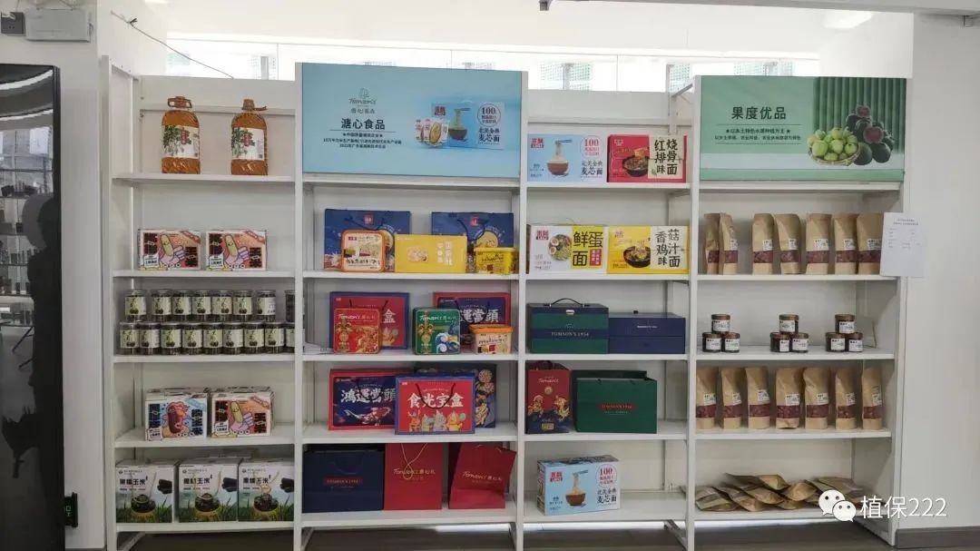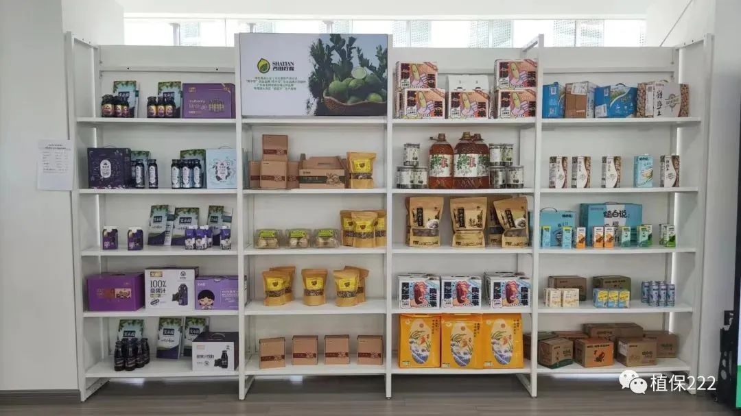 在农业名品超市中,有许多绿色无公害的天然农产品所制成的食物,还有使用有机蔬果榨取而成的果汁,同学们都被货架上琳琅满目的商品所吸引,好奇地参观着。