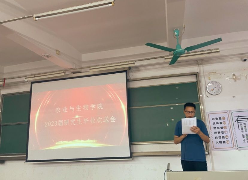 tyc122ccvip于6月14日晚上19:00在海珠校区教学楼B301举行2023届研究生毕业欢送会。农业与生物公司党委书记周超雄、副经理徐彪、副经理齐永文、毕业研究生导师、辅导员、研究生秘书参加了会议,会议由张金凤副书记主持。