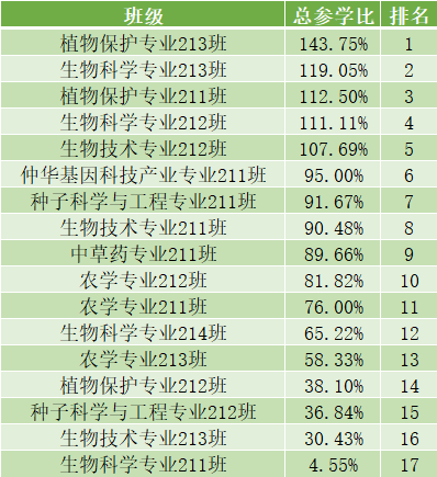 以下的班级参与率已有较大的提升