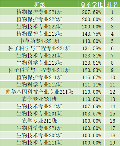以下的班级参与率已有较大的提升