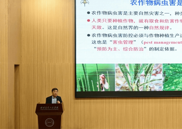 3月30日上午,浙江大学“求是”特聘教授、博士生导师,教育部“长江学者”特聘教授、国家杰出青年基金获得者、973计划项目首席科学家、国家重点研发计划项目首席专家、浙江省特级专家陈学新教授在白云校区行政楼一楼学术报告厅作《害虫生物防治的理论创新与技术突破》专题讲座。浙江大学黄健华教授、王知知副研究员,公司副经理徐彪,教师代表申建梅、何沐阳以及公司各级植保专业的同学们参加了此次讲座。此次讲座由徐彪主持。
