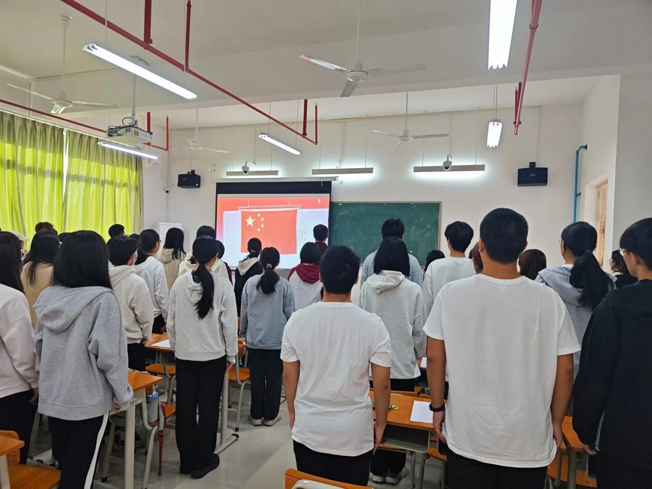 活动开始,全体人员肃然站立,伴随着国歌庄严的旋律,师生们满怀激情,用铿锵有力的歌声共同唱响了国歌。
