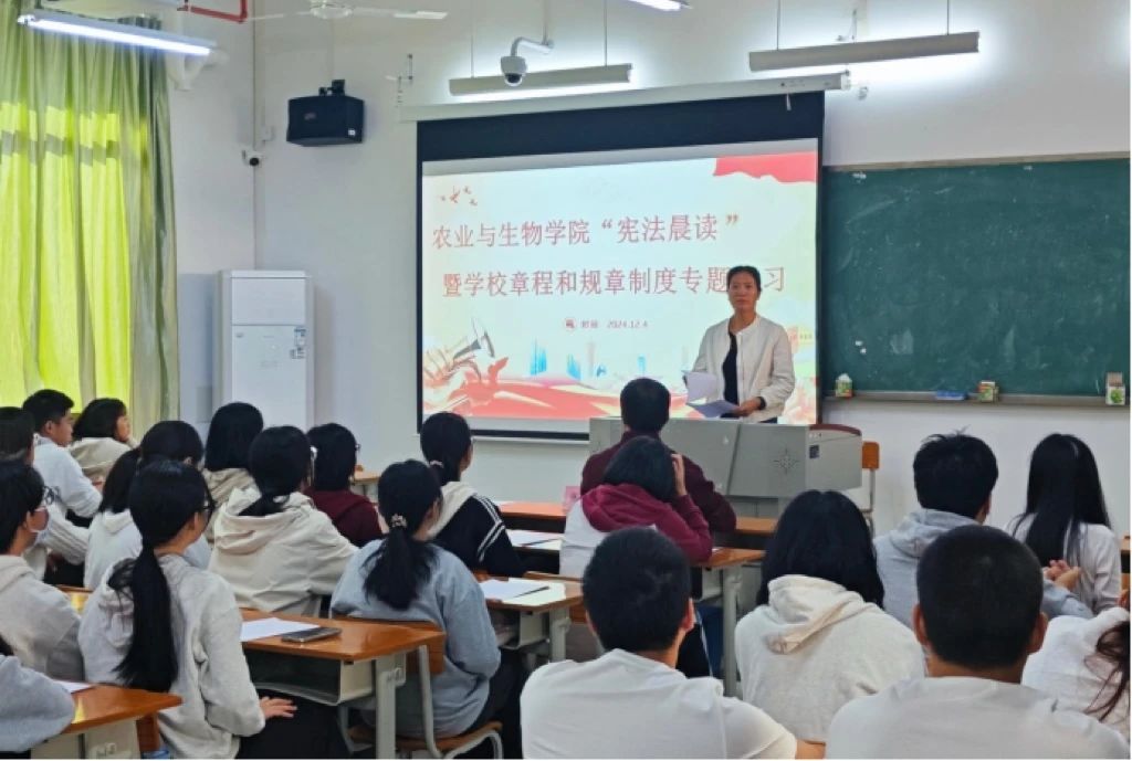 2024年12月4日,我们迎来了第十一个国家宪法日。为了传承和弘扬法治精神,进一步加深广老员工的宪法认知,tyc122ccvip于12月4日上午,在生命科学大楼A座509室举行了“宪法晨读”暨公司章程和规章制度专题学习活动。农业与生物公司党委副书记张金凤、辅导员梁定超和70余名员工代表参了加此活动。