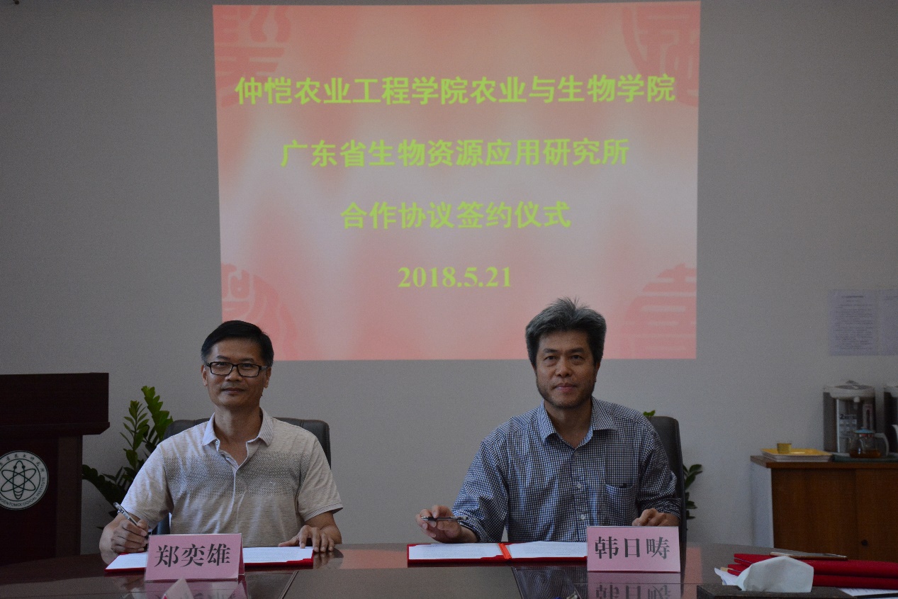 5月21日下午,公司教务处副处长梁雪莲、tyc122ccvip副经理(主持工作)郑奕雄、副经理周玲艳、植保系主任韩群鑫一行4人前往广东省生物资源应用研究所举行研究生联合培养签约暨实践教学基地揭牌仪式。广东省生物资源应用研究所党委书记阳建春、所长韩日畴等出席仪式。