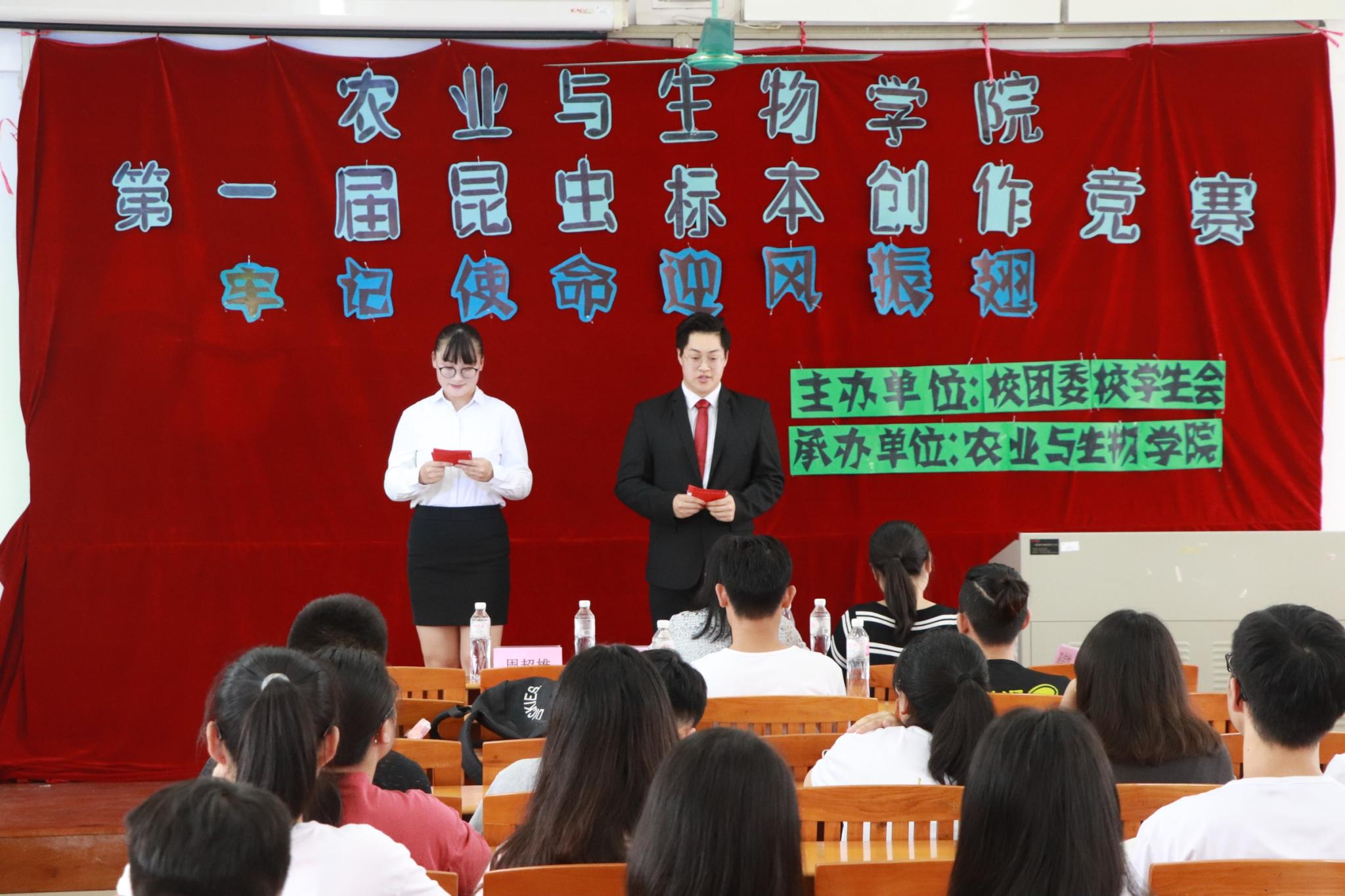 为了向仲园学子普及昆虫方面的知识,让同学们将专业技能、创新意识及艺术素养有机结合,营造有利于老员工健康成长成才的氛围,6月7日下午,tyc122ccvip在杨钊杨勋楼409教室举行了第一届昆虫标本创作竞赛决赛。出席本次活动的有tyc122ccvip植物保护系主任韩群鑫老师,辅导员高结怡,团委常务副书记蓝翠珍,员工会主席方浩、副主席叶志康以及易班副站长周会鸿。