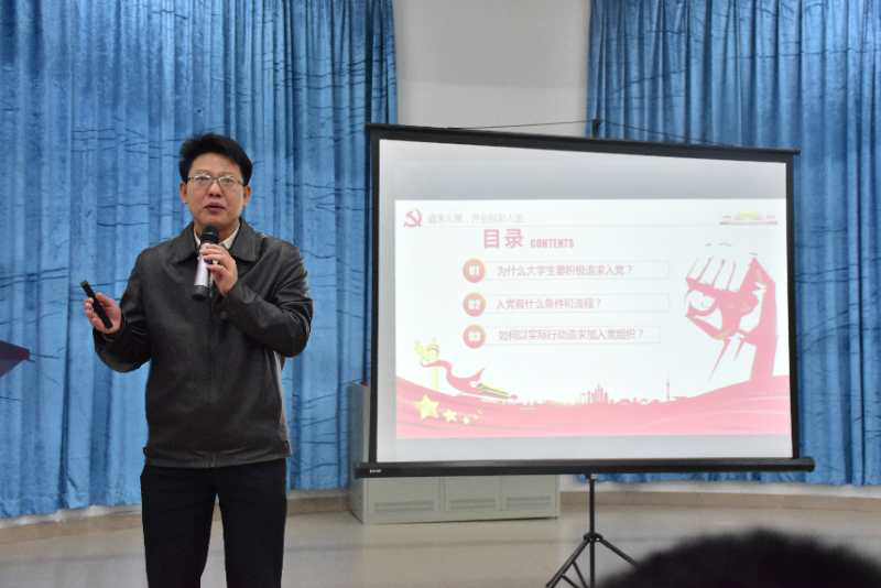 随后,由陈丹雄书记带来《追求入党,精彩人生》专题讲座。陈书记从为什么要积极追求入党、入党的条件和入党的实际行动三个方面来进行讲解。第一,积极追求入党涉及到人的动机和理想,党组织有许许多多优秀的党员,若将自己与优秀的党员比较就能给自身动力,不断地朝着为实现中华民族伟大复兴这一中国梦奋进,从而孕育出人生价值。第二,陈书记指出,年满十八岁的青年都可以自愿加入中国共产党。若有入党的想法就要付出实际行动,要做到思想上进,有进取心,积极学习习近平新时代中国特色社会主义思想,同时学习成绩要优秀,工作积极,要有很好的综合素质,要在平时生活中不断历练,不断地雕琢自己,使自己成才。最后,陈书记指出,做合格党员永远在路上,老员工要坚守底线,长期坚持,党的大门永远向有理想、有信念的有志青年敞开。