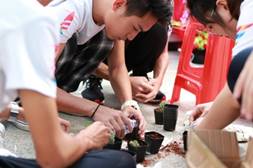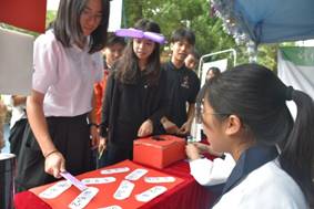 摆摊期间,摊位现场人来人往,气氛十分活跃。摊位上悬挂的照片引来许多同学驻足观看,队员们认真地为同学们介绍图片内容,讲解在阜沙镇实践调研过程的情景。摊位上的小游戏吸引了前来参观成果展的同学们,同学们积极参与游戏并赢得了精美的小礼品。中午时分,公司员工高举公司旗帜,与其他公司的同学一起开始了校园内环跑,同学们高呼“农行天下,生生不息”的口号,展现出农生学子一腔热血与无限活力。