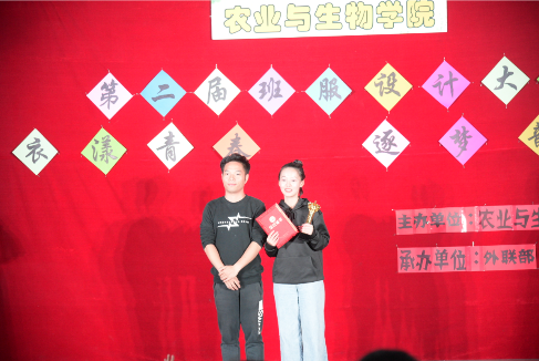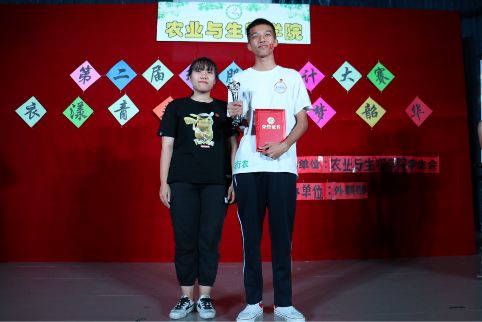 团委员工副书记黄惠娟为生科191颁发二等奖 团委副书记苏登为种科192颁发一等奖