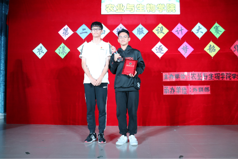 团委员工副书记佘梓健为种科192颁发最佳人气奖 员工会主席吴润新为植保191颁发三等奖