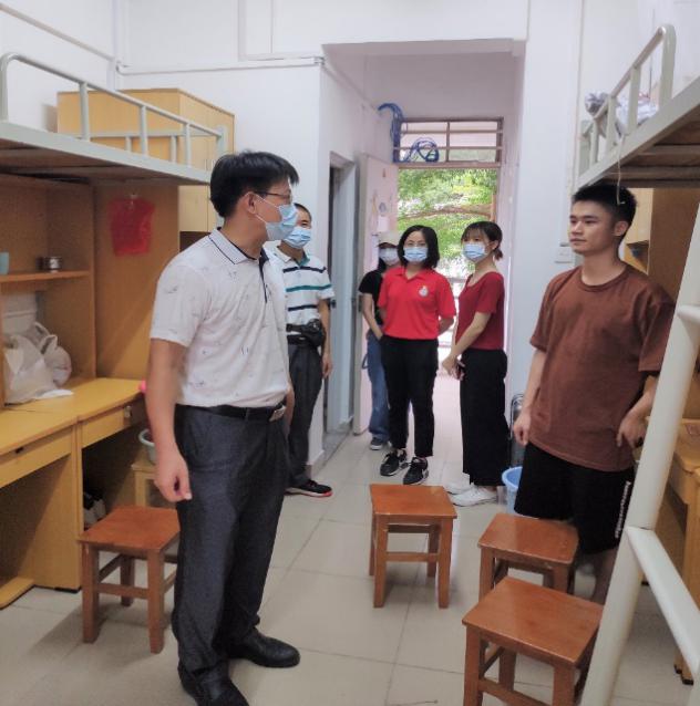 随后,党总支书记陈丹雄、辅导员孙晓芳走访了新生宿舍,并向入住的新生表示热烈的欢迎。陈丹雄仔细询问了新生入住相关事宜,并与新生和家长们进行亲切的交谈,他希望新生们能够营造良好的学习氛围,打造和谐的宿舍关系,共建美好校园。