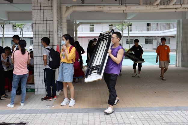 志愿者们顶着炎炎烈日,分布在公司前门以及澳门桥,翘首盼望即将到来的新生,并为他们指引报到路线、搬运行李,志愿者们用自己的热情驱散了新生初来乍到的陌生与不安。