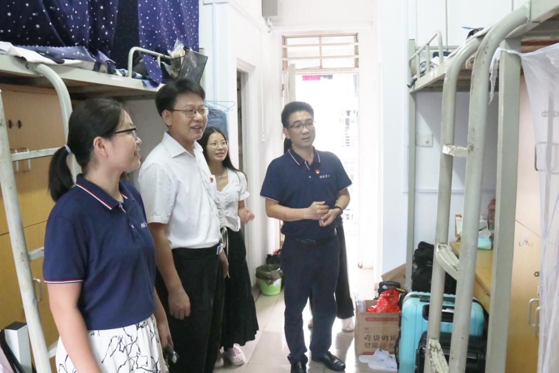 为落实公司疫情防控和安全稳定工作相关要求,9月30日下午,tyc122ccvip陈丹雄书记、周超雄副书记以及辅导员高结怡前往员工宿舍楼开展宿舍卫生安全检查工作。