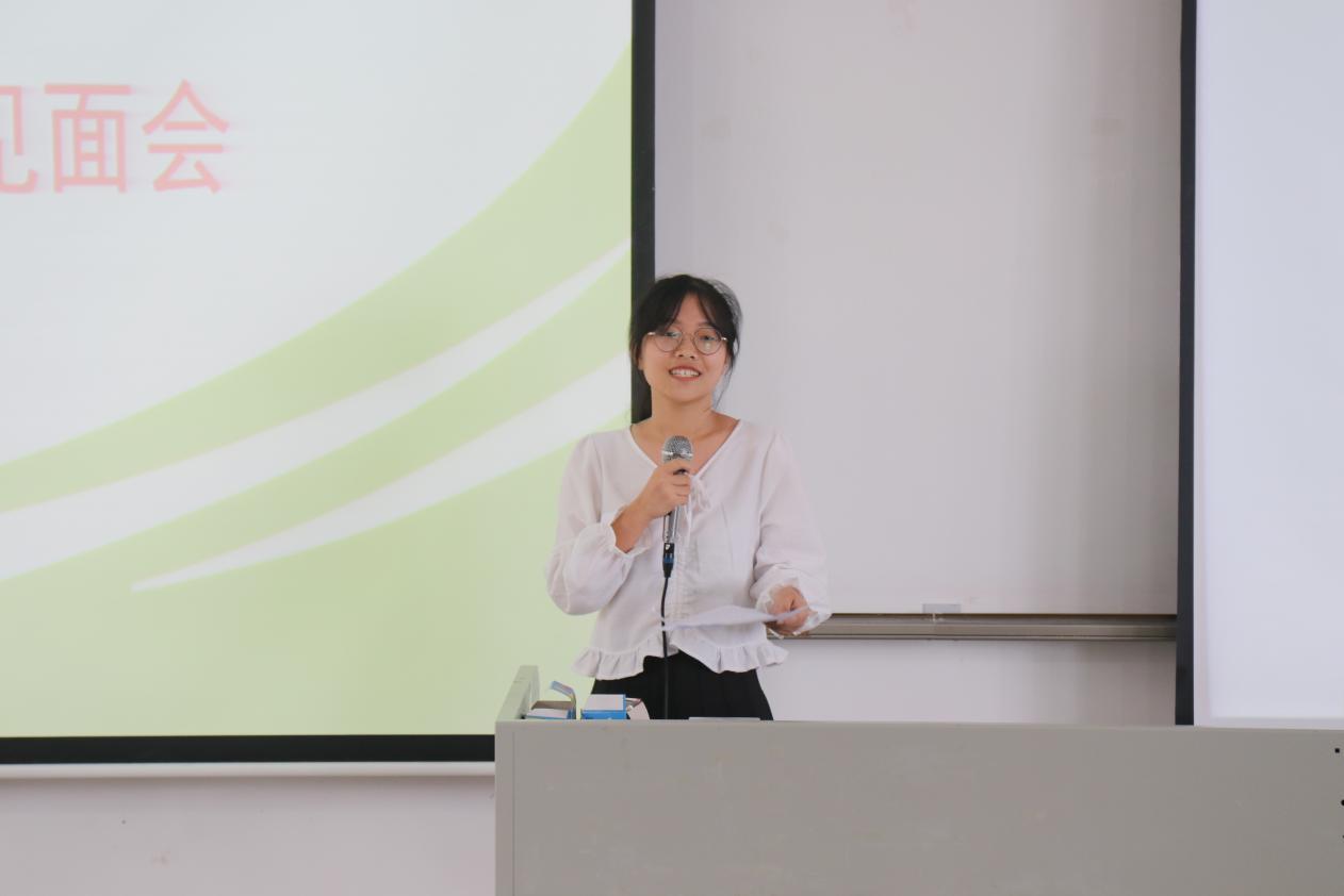 生技171班郑敏烨作为老生代表发言。她结合自身经历,鼓励新生们努力学习,争取优异成绩,同时抓住一切可以锻炼自己的机会来提升自身能力,最后她用“星光不问赶路人,时间不负有心人”来勉励新生一步一个脚印,以崭新的面貌迎接新的开始。