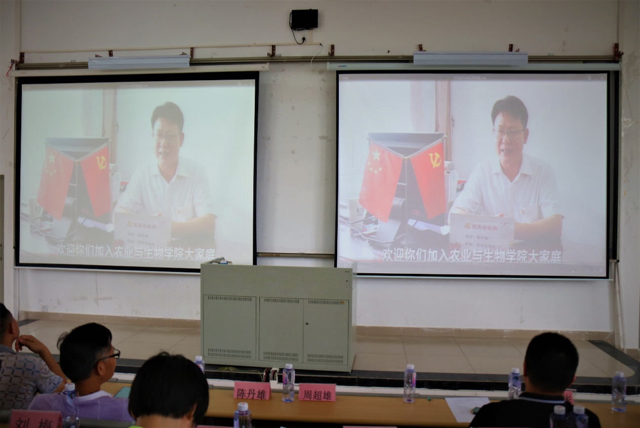最后,陈丹雄书记以视频形式做会议总结。他首先代表全院师生对努力求学十多年顺利考上仲恺农生院的250位新同学表示真挚的祝贺和热烈的欢迎!紧接着,他指出2020级新生注定不平凡。一是在疫情防控中高考,以抗疫参与者身临其境;二是身处国家民族伟大复兴的新时代;三是处于国内大循环为主体、国际国内相互促进的新发展战略转变的新时代;四是身处乡村振兴的新时代。最后,他向新生们提出三点希望。一是志存高远、脚踏实地;二是快速适应、刻苦学习、全面发展;三是严于律己、融入集体、为集体添光添彩。他祝愿新生们在新起点开启新征程,圆梦仲园,青春逆风飞扬,发展成才,报效民族伟大复兴。