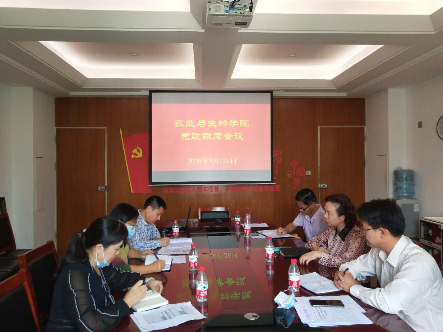程董事长表示非常高兴参加农业与生物公司党政联席会议,在了解了农生院2020年各项工作的开展情况后表示今后将深入专业了解情况,对农生院的工作做出三点指示:第一,对于植物保护专业被推荐申博表达了重视。植保专业要勇当新时代的“拓荒牛”,注重改革创新,勇当桥头,勇于担当。作为最早的学科专业,植保专业要传统与现代相结合,在农生院中博发展,开拓创新。当前公司的头等大事就是升大、申博,植保专业作为公司一流专业,被推荐申报博士点,应该整合资源推动植保专业的发展,植保专业能够申博成功对公司和公司都是有好处,这是相互相成的。第二,教学改革,仲华基因科技产业班是改革的一个试点,先行先试,类似于“荣誉班”“拔尖班”,优先放在国外交流省外交流,实行导师制,让班上的员工尽早进入科研团队中,各专业老师将大的人生观融入农科讲堂中,农生院在与华大基因的合作中大有可为。第三,推进现代种业研究院工作。