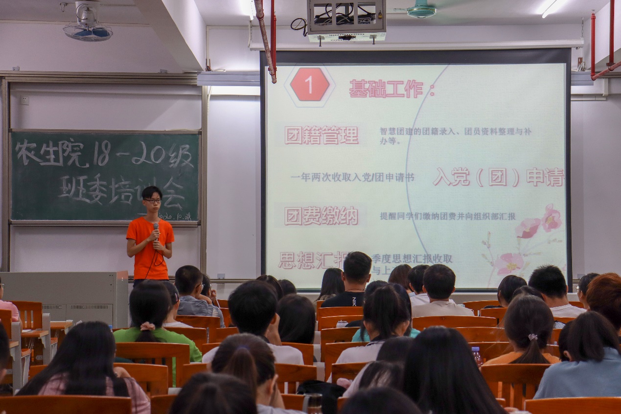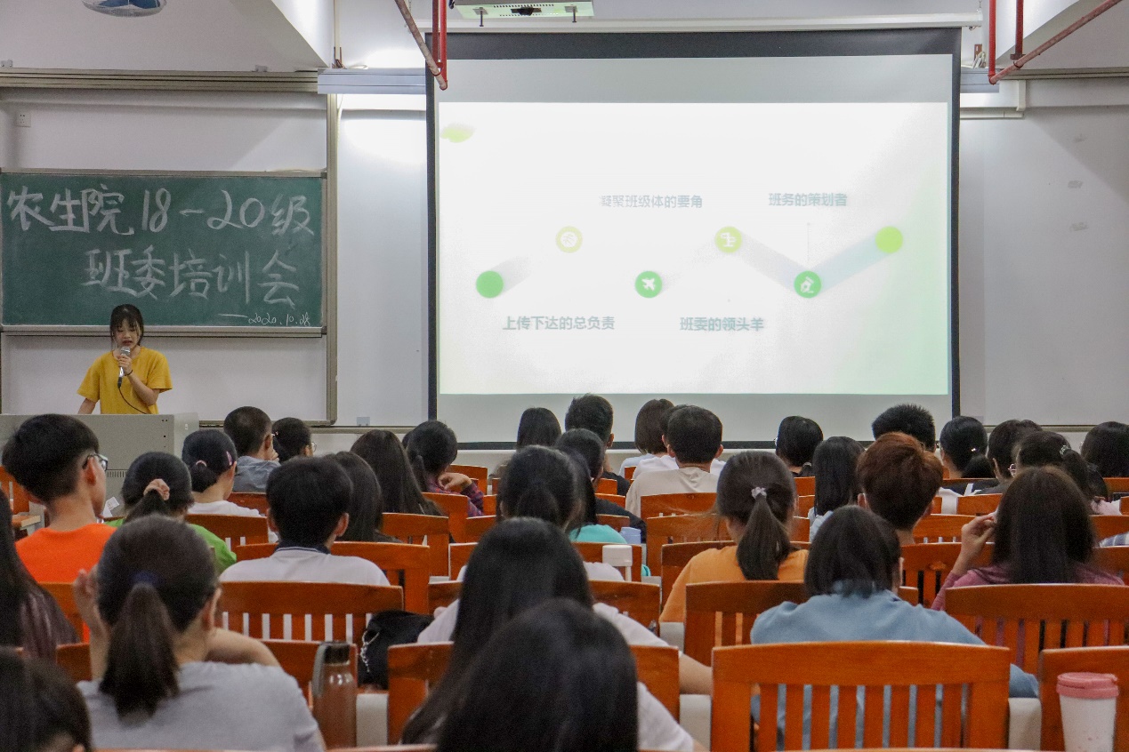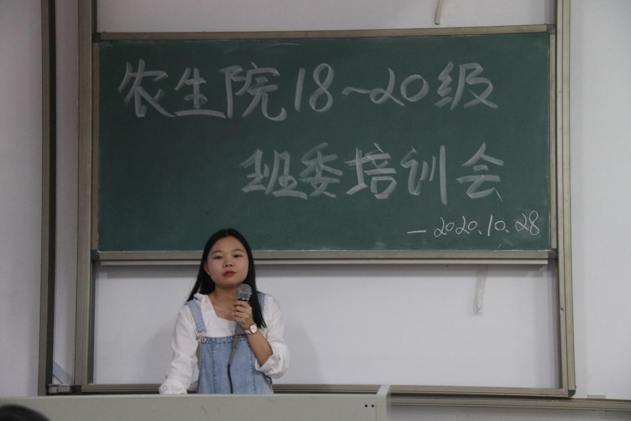 在612教室,农学181的梁华霞同学作为学习委员代表发言,她向学委提出了三点建议:首先要做到及时沟通交流,关于学习方面的问题要及时向老师和同学沟通交流。其次要做好榜样示范,学委在学习上应起到带头作用。最后要牢记工作职责,学委的工作关乎到整个班集体的学习,对待工作都一定要认真负责。
