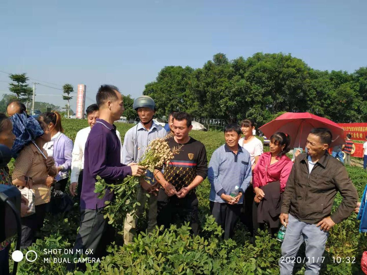 2020年11月6-7日,广东省花生大豆产业技术体系现场观摩会在湛江市遂溪县金龟岭基地顺利召开。出席本次会议专家和领导有:国家花生产业技术体系湛江试验站站长陈傲研究员、广州试验站站长李少雄研究员,湛江市农业技术推广中心副主任吕以志高级农艺师,湛江市农业科学研究院副经理黄胜研究员、副经理梁土寿高级农艺师。出席会议代表共100多名,体系各创新团队均派出骨干及青年成员参加了会议,示范基地周边村民也纷纷奔走相告前来参加观摩学习。会议由tyc122ccvip、广东省花生大豆产业技术体系主办,广东省农业科公司作物研究所、广东省农业科公司植物保护研究所和湛江市农业科学研究院共同承办。