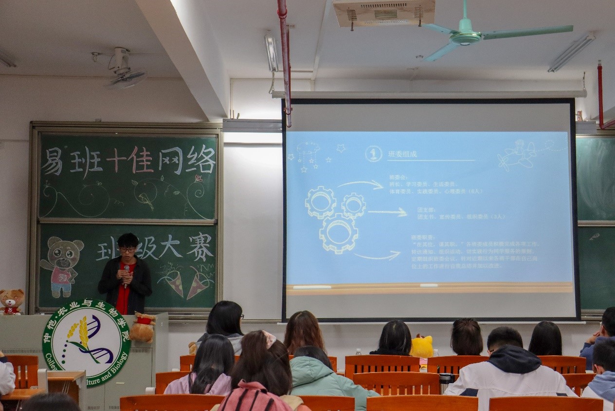 经过初赛的激烈角逐,共有九个班级崭露头角,顺利进入复赛。复赛中,各班代表用幻灯片展示了易班活动建设,其中包括班级简介、班级管理、团建活动、班徽意义等,他们通过演讲向观众呈现了一个班级活力激扬的青春面貌以及热爱学习的良好氛围。各班级借助易班这个平台,发布开会通知、投票、话题以及学习交流,记录每一次团建活动、班级聚会并上传照片,利用易班班群监督同学们学习情况、作业完成进度,促使同学们积极学习,共同进步。