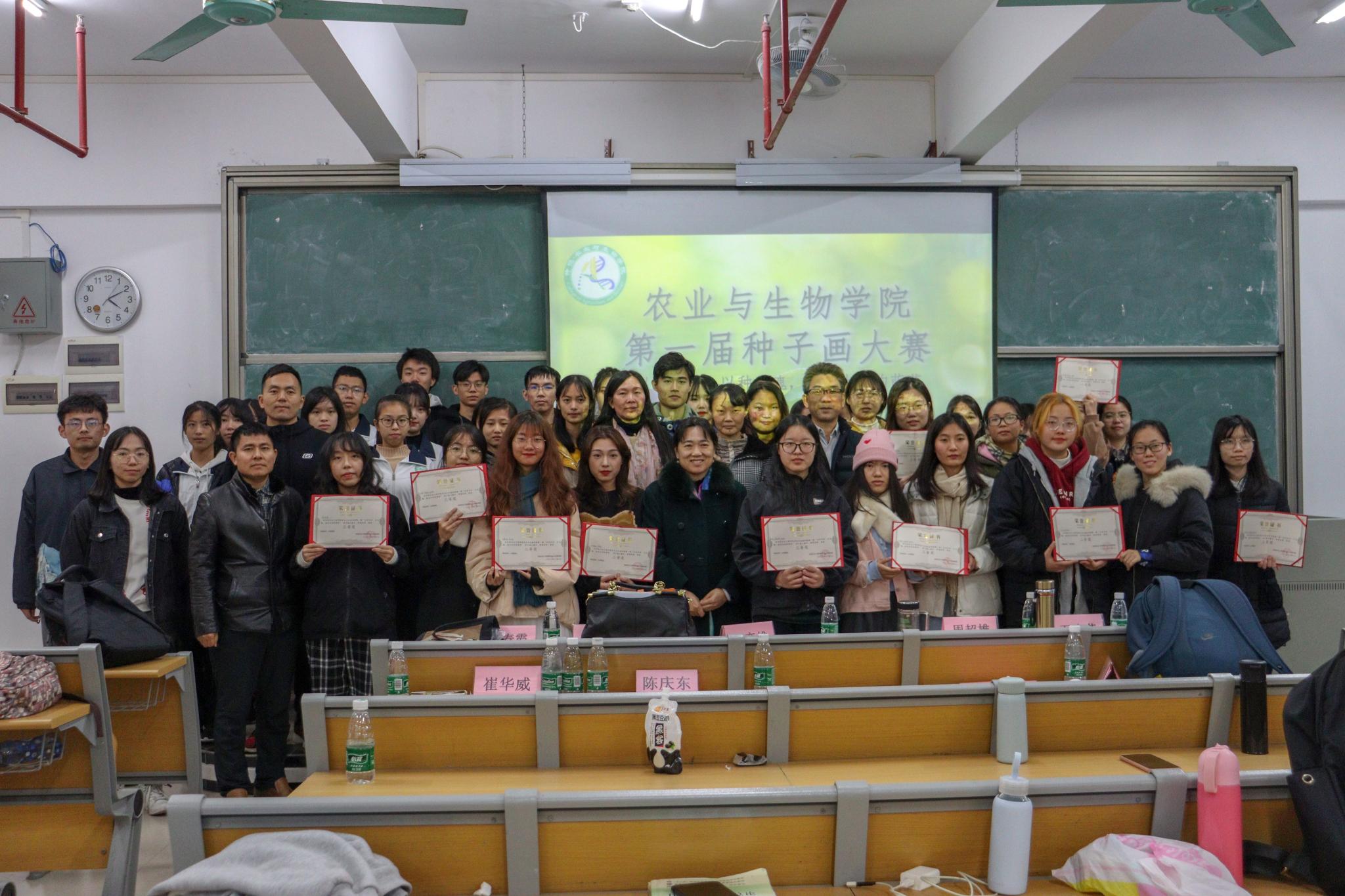 2020年12月17日,由农生公司种科系与刘季平教研组联合举办的“第一届种子画大赛”于白云校区成功举办。公司经理郑奕雄、党总支副书记周超雄、副经理周玲艳和万小荣,以及艺术设计公司刘春霞老师出席活动。