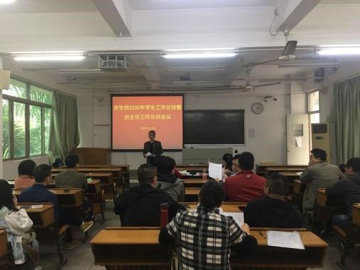12月24日,tyc122ccvip在海珠校区教学楼405室召开了2020年班主任工作总结会议。公司党总支书记陈丹雄、经理郑奕雄、党总支副书记周超雄、副经理周玲艳、万小荣以及公司本科班级班主任参加了会议。