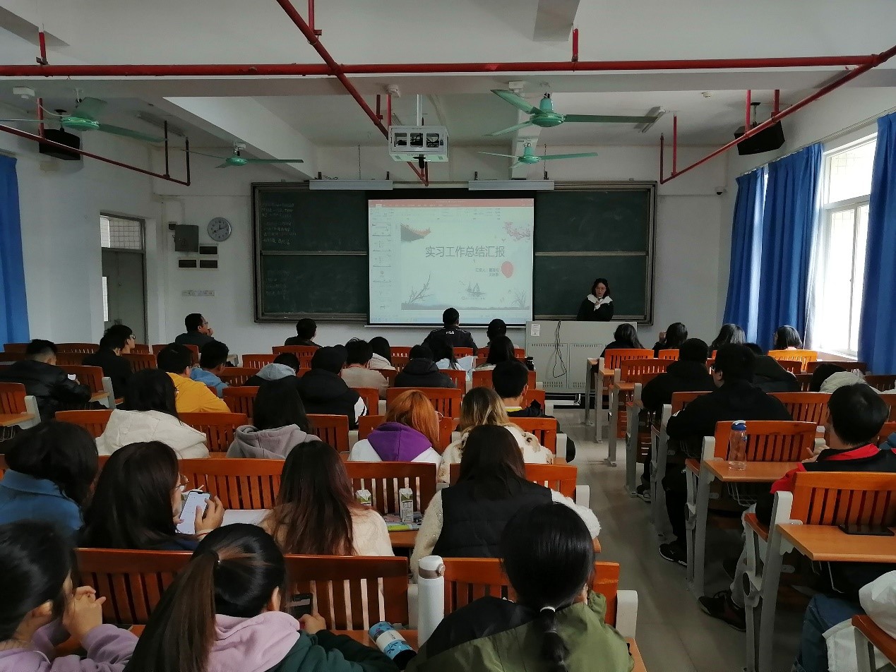 随后,按照要求,同学们以实习科室为小组进行了实习总结汇报,共有18个小组。各小组分别从日常工作、学习、生活和实习心得等方面进行了汇报,同学们普遍反映虽然实习部分环节很枯燥,但经过一阶段的适应和锻练以后,他们发现所有的付出都是为了后面更多的收获,在实习单位他们学习到了很多课本外和公司没有接触的知识,扩展了知识面,此外,本学期实习没有吃住后顾之忧,能够更全身心投入学习中去。