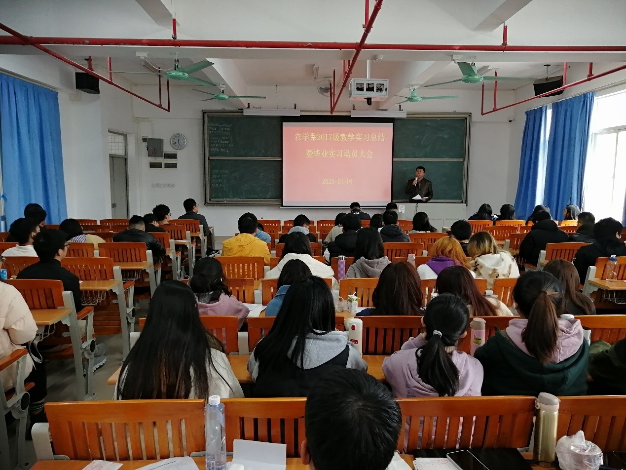一元复始,万象更新。在这辞旧迎新的日子里,2021年1月4日上午,tyc122ccvip农学系在D栋502召开2017级教学实习总结暨毕业实习动员大会。会议由系主任陈青春主持,农学系全体教师(蒋锋、刘鹏飞、孙伟、兰霞、张姿丽、李春梅、包格根、杨永)和2017级全体员工参加了此次会议。