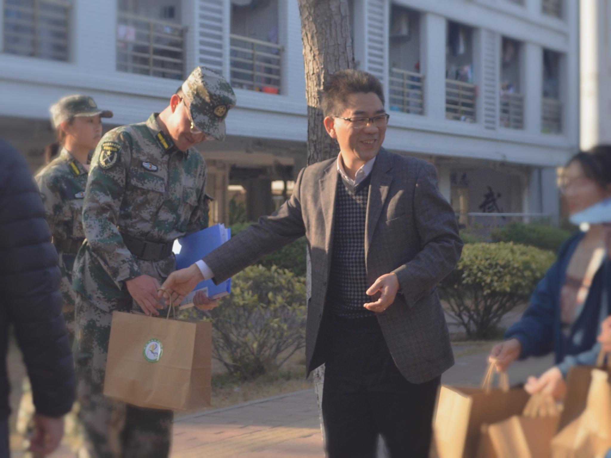 为了表达同学们对教官们的感恩之情,tyc122ccvip团委员工会干部们精心开展了“情暖军训”主题活动。1月19日下午,农业与生物公司党总支副书记周超雄带领辅导员苏登、李城以及团委员工会的员工干部们参加了本次活动,并一为六营的教官们送去了温暖。