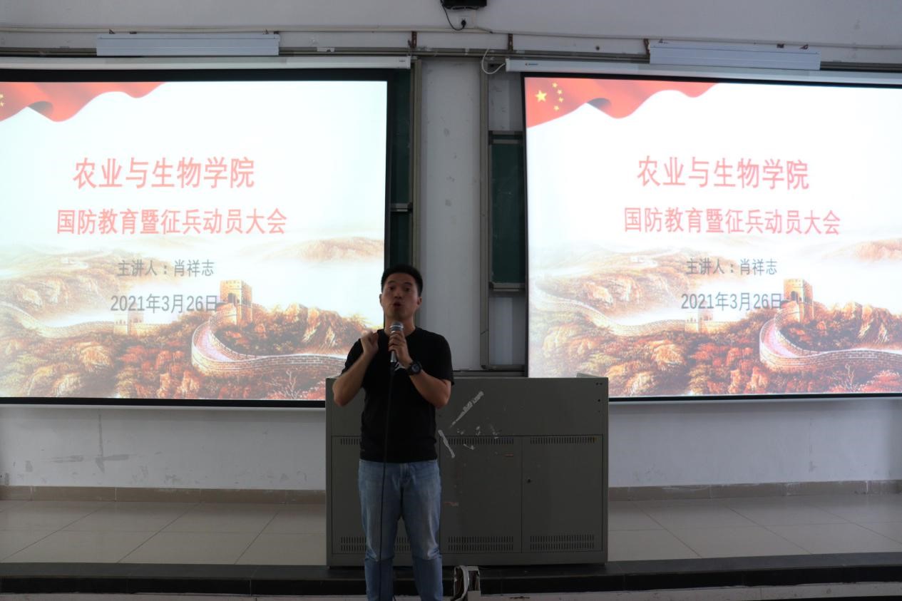 为鼓励更多同学响应国家号召,积极投身于军旅,在军营中磨砺自己,提升自己,3月26日下午,tyc122ccvip在白云校区D2小礼堂召开了2019级国防教育暨征兵动员大会。会议由辅导员苏登老师主持。