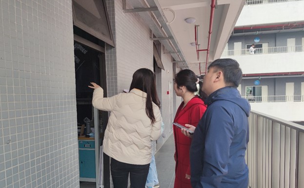 李城、邝健睿、肖芳芳老师一行来到公司的员工宿舍走访询问,详细了解同学们宿舍目前的安全与生活情况。同时他们提醒同学们要时刻注意宿舍卫生、公共区域卫生以及消防安全,共同建设一个良好的宿舍环境。三位老师重点对宿舍消防安全进行教育,反复叮嘱同学们一定要加强安全防范意识,注意用水用电安全,对不规范用电的行为进行了批评指正。