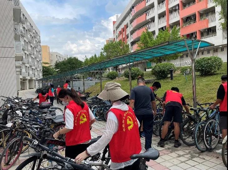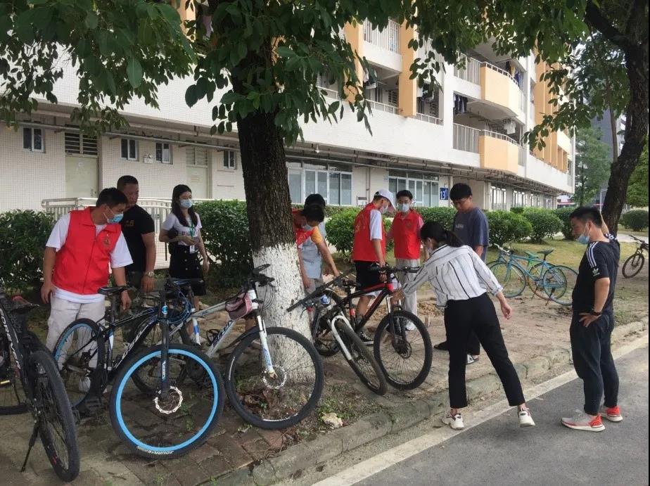 为加强公司公共区域管理,规范校园停车秩序,进一步构建安全、有序、文明、优美的校园环境,2021年6月9日下午15点,tyc122ccvip辅导员苏登、孙晓芳、李城、肖芳芳带领员工党员及入党积极分子组成自行车清理小组,协助保卫处工作人员在校内开展了校园无主自行车的清理活动,志愿者们在7栋员工宿舍楼下集合开展本次