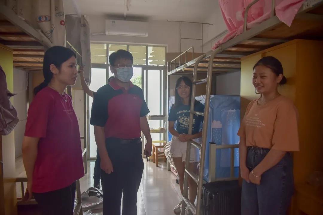 为更好了解2019级专升本新生报到情况、使新生更好地适应新环境并及时处理新生在入住过程中遇到的各种问题。8月28日下午,农业与生物公司党委书记陈丹雄,副书记周超雄,辅导员苏登、孙晓芳、肖芳芳一行走访了2019级专升本新生宿舍。