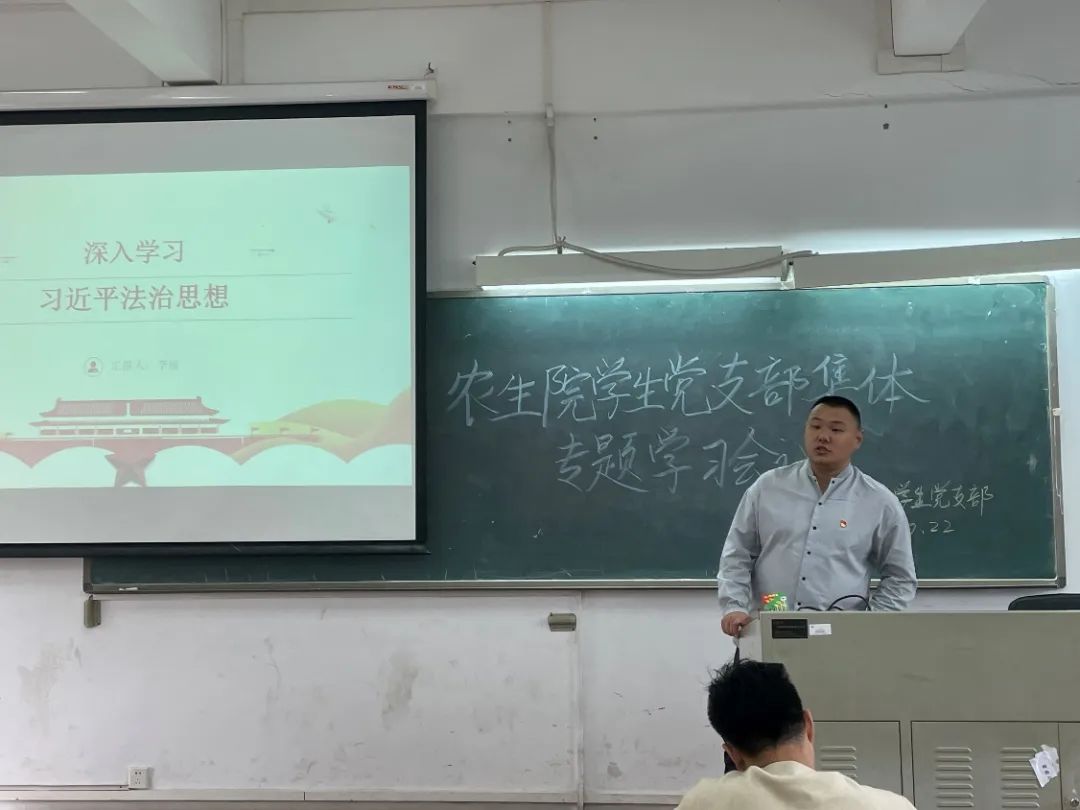 为深入学习习近平法治思想,推进全面依法治国,也为进一步提高员工党员的法治意识,2021年10月22日中午,tyc122ccvip各员工党支部在杨钊杨勋楼402召开习近平法治思想专题学习会议,员工党支部书记孙晓芳、苏登、李城出席了会议,全体员工党员参加了本次会议。此次学习会由植物保护员工党支部代理书记李城主讲。