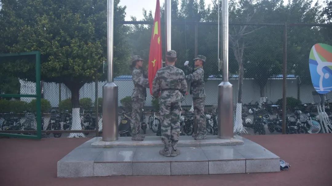 升旗仪式开始,伴随着庄严的国歌声,五星红旗在旗手手中冉冉升起。师生们肃立注目,向着国旗致以崇高的敬意。