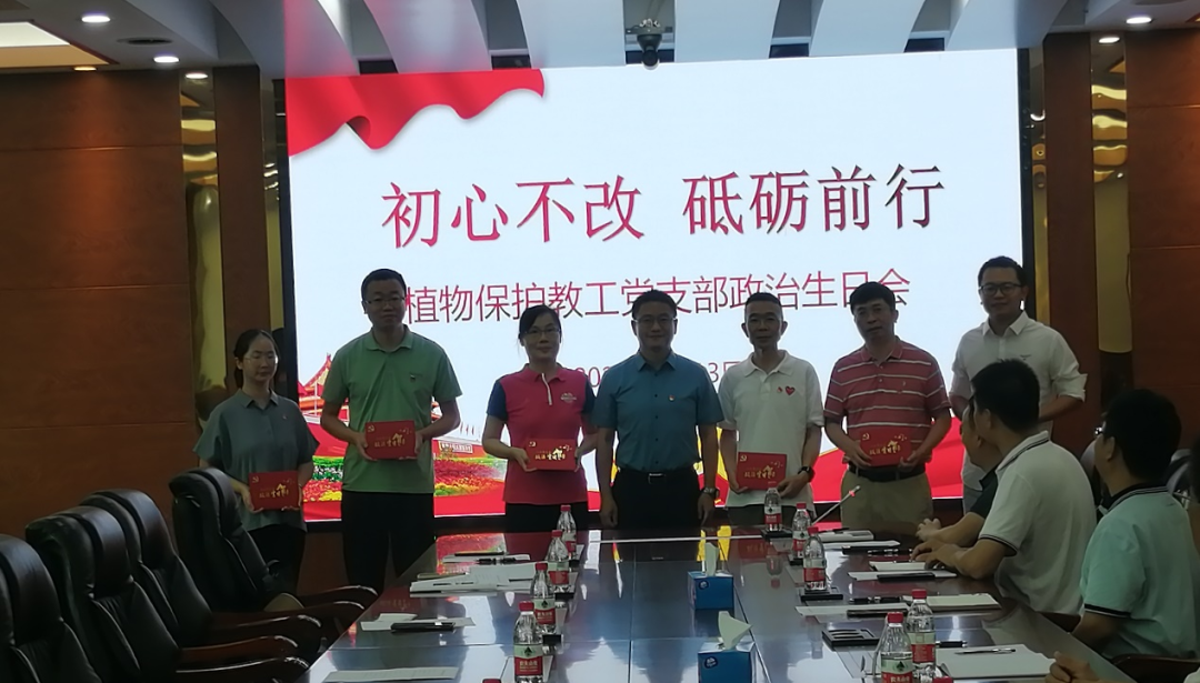 7月13日下午,植物保护教工党支部在海珠校区教学楼409会议室举行“政治生日”活动,此次活动的主题为“初心不改,砥砺前行”。廖明董事长出席本次活动,参加活动的有tyc122ccvip领导班子成员周超雄、喻国辉、张金凤、徐彪以及植物保护教工党支部全体党员。活动由党支部书记董章勇主持。