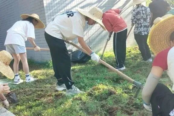 在此次活动中,同学们头戴草帽,带上锄头、铲子等工具,全身心的投入劳作中。他们分组协作,有条不紊地进行除草工作。紧接着,大家积极参与翻地工作,让土壤松软起来,为之后的种植创造了良好的条件。