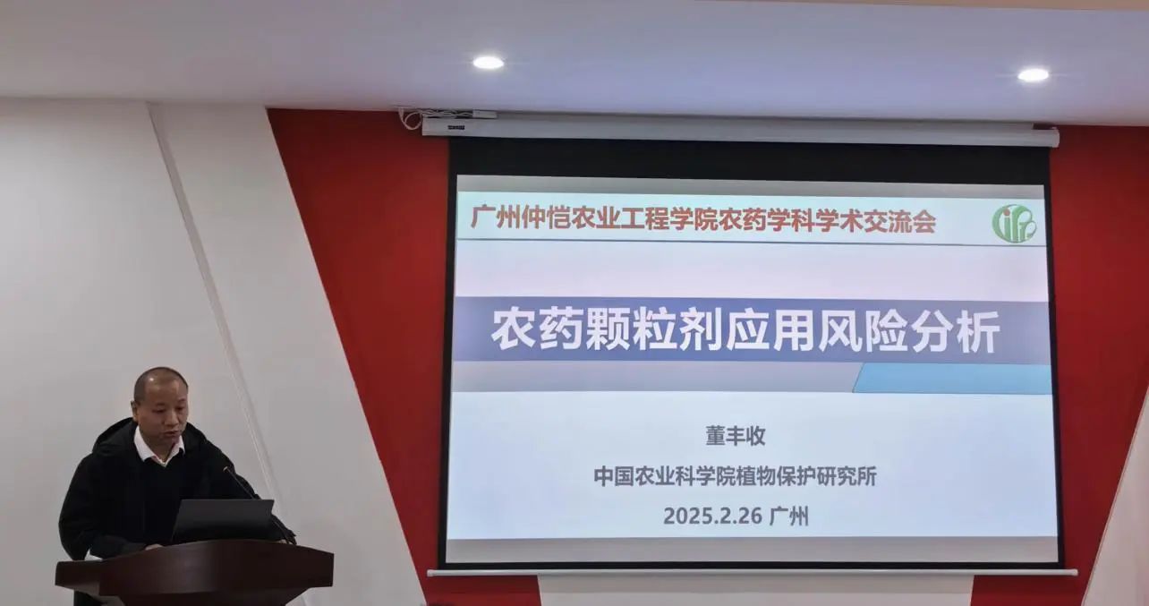 董丰收研究员以“颗粒剂农药应用的剂量效率及风险分析”为主题,介绍了颗粒剂农药的使用效率及其对环境和健康的潜在风险,并强调了科学用药对农业安全和可持续发展的重要性。