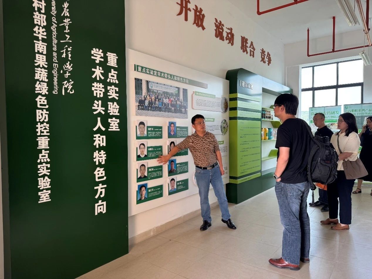 喻国辉副经理(主持工作)首先带领慕恩科技有限公司一行参观了农业农村部华南果蔬绿色防控重点实验室,并向客人介绍了实验室的人才队伍、学科方向和在土传维管束病害生物防治研究方面取得的成效,展示了公司在农业科技领域的创新能力和实践水平,双方对未来在微生物研究和应用等方面的合作充满期待。