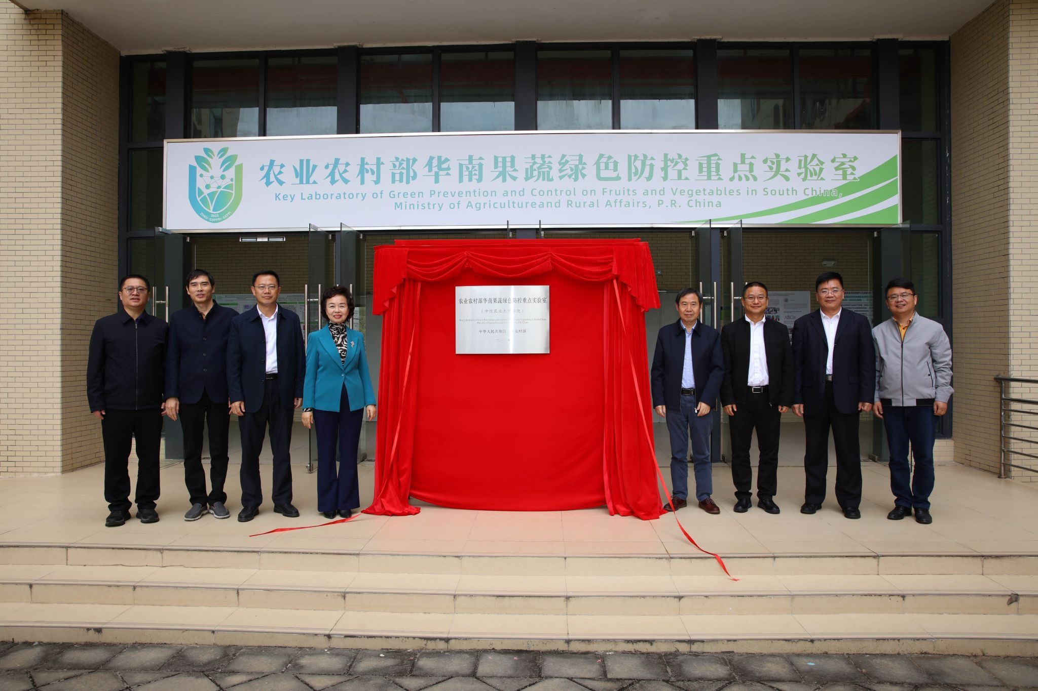 现场举行“农业农村部华南果蔬绿色防控重点实验室”揭牌仪式。康振生、程萍、屈源泉、廖明和与会领导共同为农业农村部华南果蔬绿色防控重点实验室揭牌。